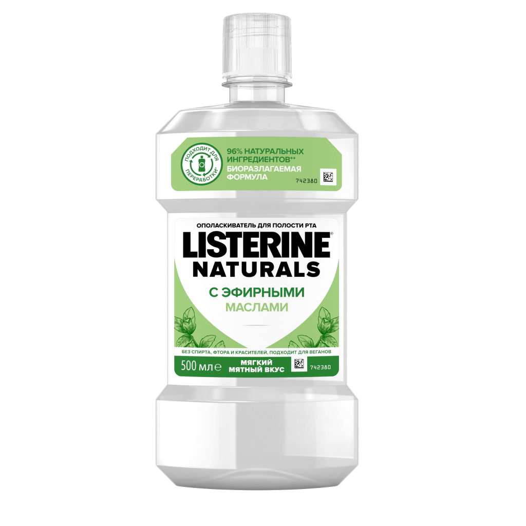 LISTERINE® «Свежая мята». Это ополаскиватель для полости рта с мягким мятным вкусом, предназначенный для ежедневного использования. Его особая формула включает эфирные масла: эвкалиптол, тимол, ментол и метилсалицилат. Эти активные вещества освежают дыхание и уменьшают образование зубного налета. Фторид в составе ополаскивателя помогает укрепить зубную эмаль.
