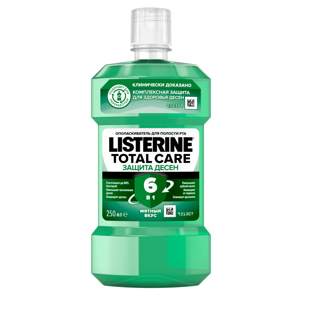 LISTERINE® TOTAL CARE. Это универсальный ополаскиватель для десен и зубов на каждый день, обладающий мягким мятным вкусом. Средство помогает в борьбе с самыми частыми стоматологическими проблемами. Использование жидкости для полоскания полости рта LISTERINE® TOTAL CARE способствует устранению бактерий, ответственных за развитие болезней десен, отложение налета и возникновение неприятного запаха. Ополаскиватель снижает образование зубного камня, помогает сохранять белизну и привлекательность улыбки. А входящий в состав средства фтор способствует укреплению эмали, защищая твои зубы от кариеса.